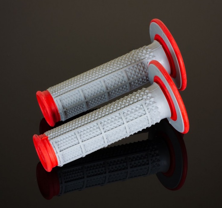 Renthal 雙層錐型握把 (Tapered series) 是由兩層複合材質所組成。其中與把手接觸的內層具有絕佳的耐磨性及耐衝擊性,長時間使用也不易磨損。柔軟的外層材質則提供車手絕佳的使用觸感。