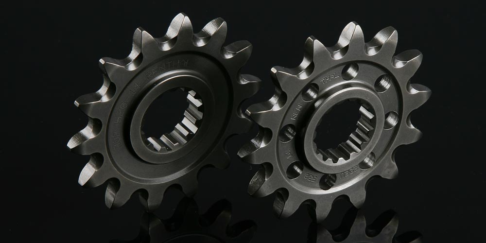 以精鍊 655M13 鎳鉻鉬鋼材質,利用高精密度的 CNC 車床加工成形,經過表面硬化 (Case Hardening) 處理後,通過非常嚴格的品管檢查後才出廠。這些高標準的生產程序使 Renthal 前齒輪具有絕佳的耐磨性及使用壽命。高精密度的 Renthal 齒輪,能與 Renthal 鏈條產生最佳的咬合,避免不必要的齒輪磨損。