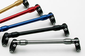 Renthal 把手橫桿主要對應 22.2 mm 把手,是以 2013 T3 鋁合金為材質,並陽極處理電渡上各種顏色,提供格外的支架點。顏色有 黑色、金色、紅色、藍色、銀色